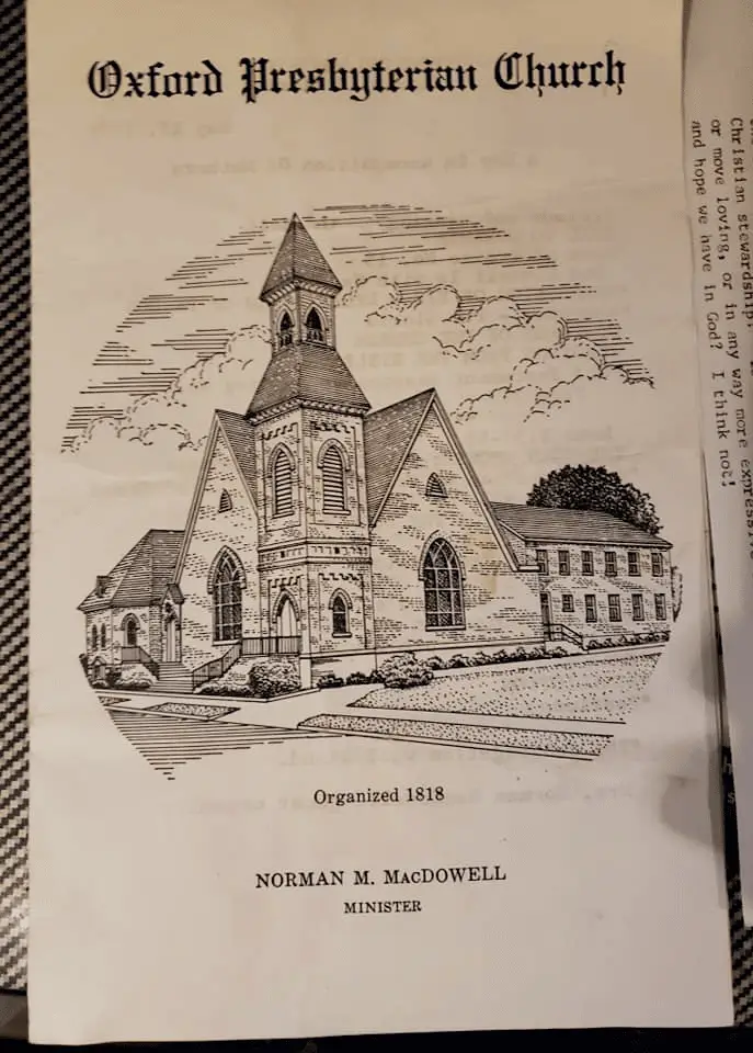 Oxford Presbyterian Church organized in 1818. Initially, the Church met in a small women’s academy where Thomas Littlejohn’s daughters attended school.