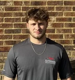 Artisan Roofing field techs Mike P and Owen G prepping site in Cary NC for roof replacement